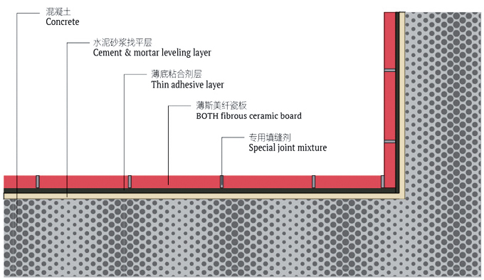 瓷板振平后,要立即把縫內(nèi)的粘合劑泥清理干凈。用502膠臨時粘合固定,24小時后,把縫內(nèi)的502 膠清理干凈,再用填縫劑把縫隙抹平、壓實(shí),并清理清潔,確保“薄斯美”的品質(zhì)形象。